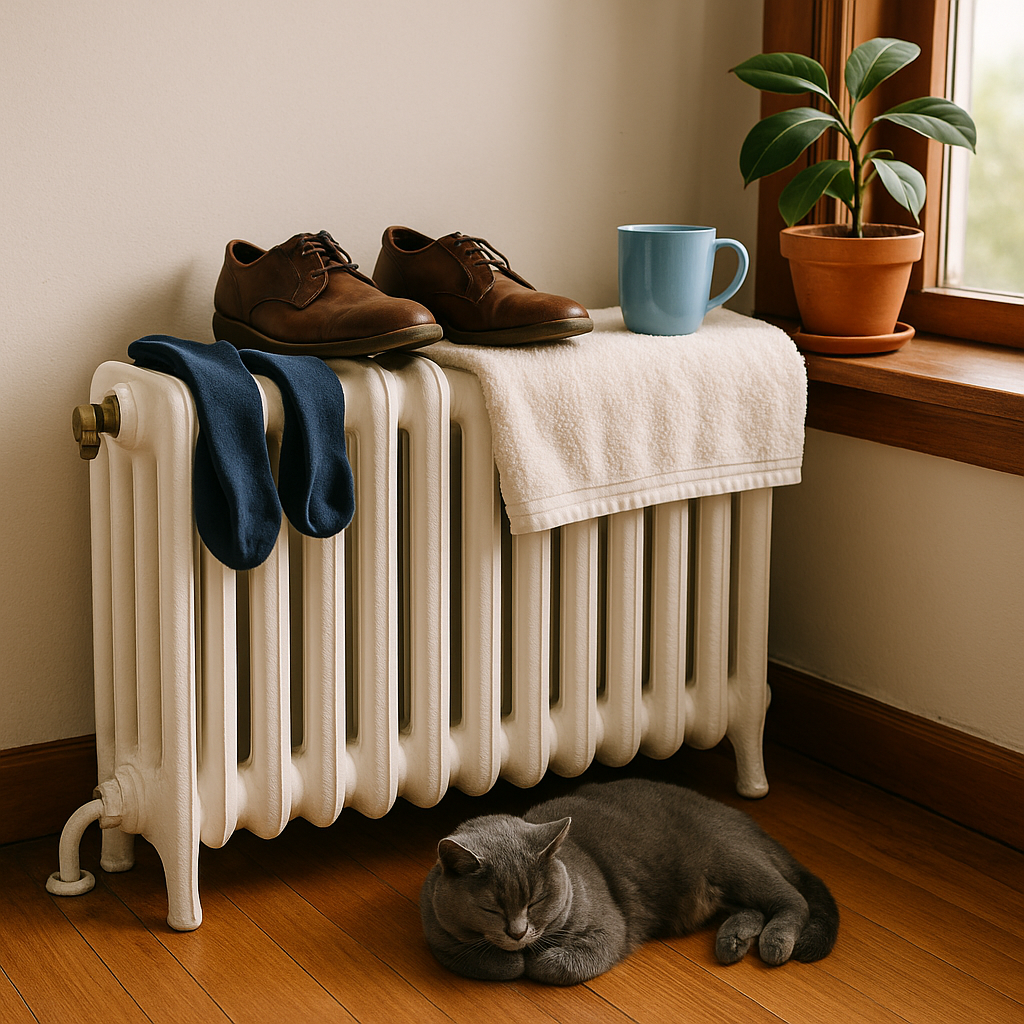 Take a moment to recognize the multiple abilities of your radiator whenever you place socks on it, use it as a coffee rest, or observe your cat seeking warmth against it.