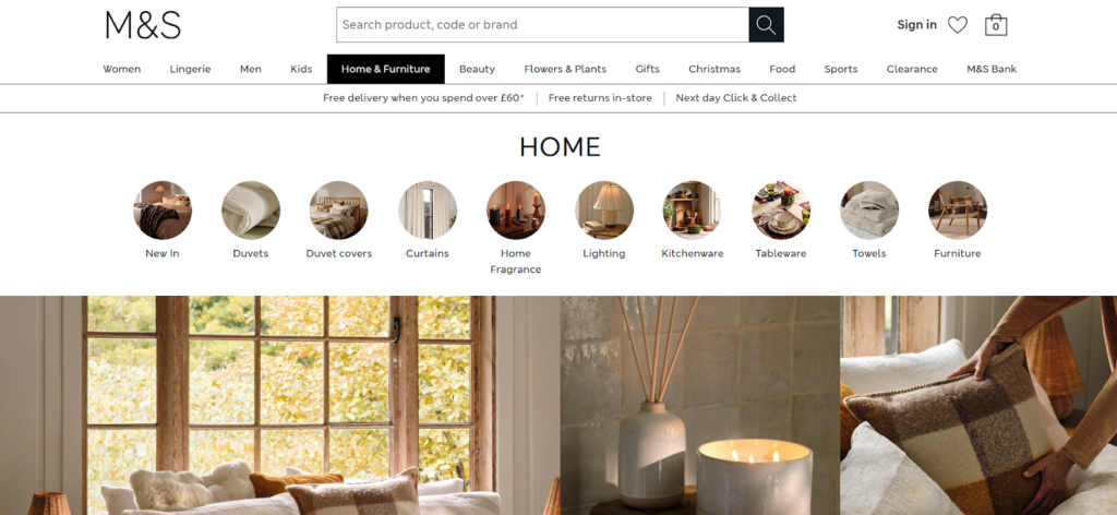 If you love cozy comfort, you’ll find plush throws, scented candles, and soft lighting that create a sense of calm and serenity. For those who appreciate bold statements, M&S’s seasonal décor and patterned cushions add vibrant touches that breathe life into any room.