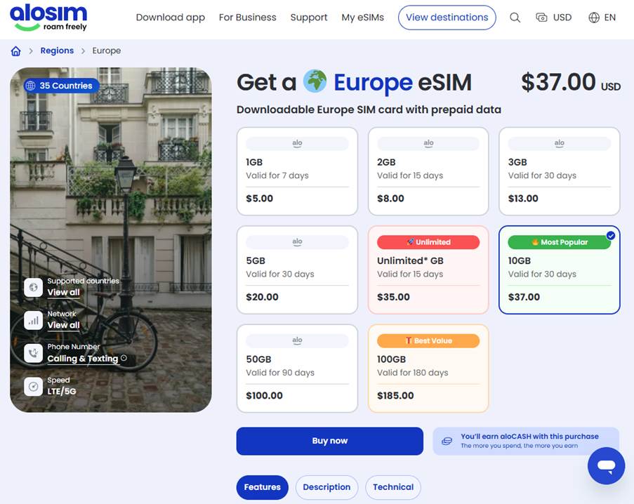 Alosim is ideal for travelers who prioritize affordability and clarity when selecting a European eSIM.