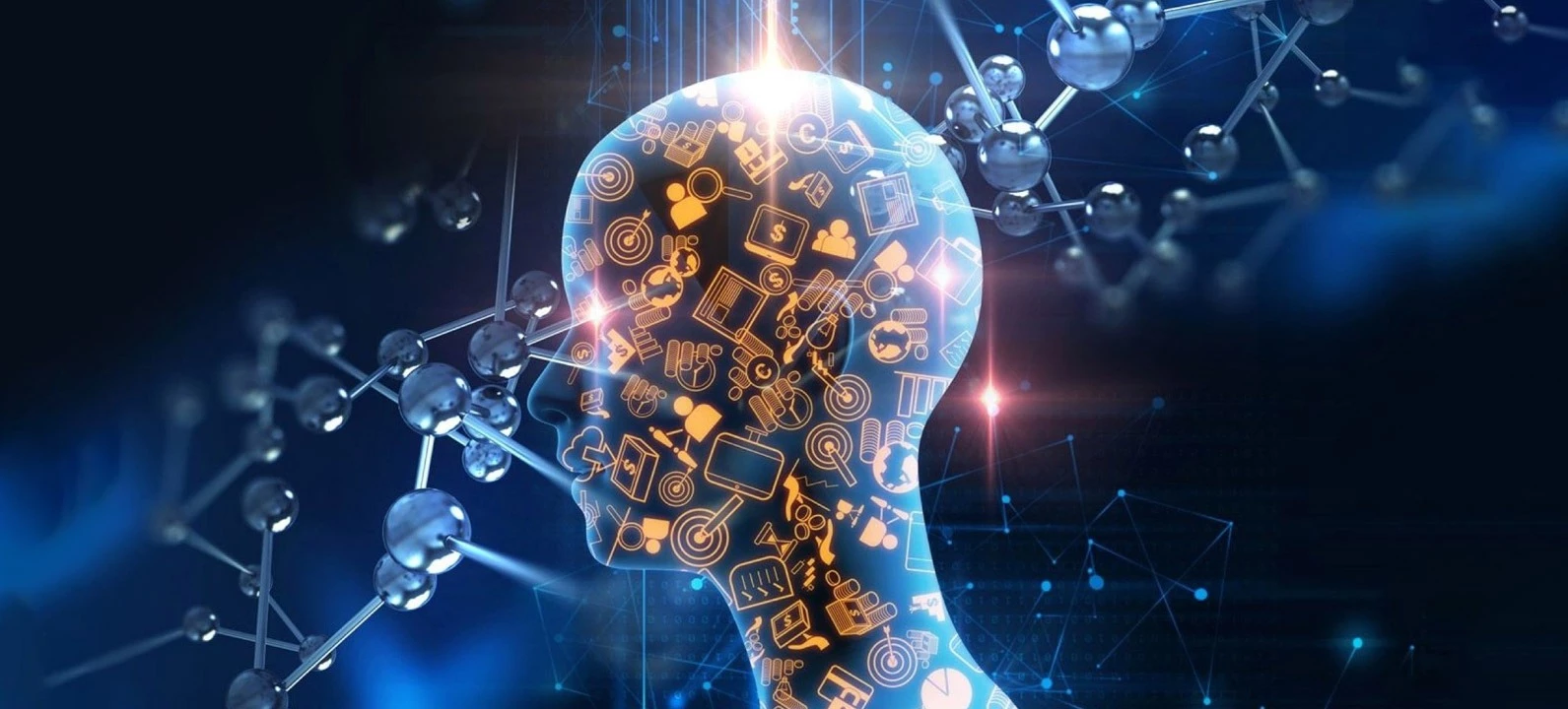 Keyboard featuring a glowing blue key labeled "AI" with a robot icon, surrounded by black keys. The image conveys a futuristic and tech-centric theme.