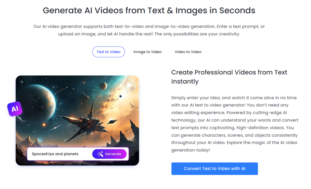 A user may start with an individual photo, a digital image, a textual explanation or a mixture of these features. The site can accept almost all the types of images in all kinds of resolutions and automatically optimizes them to convert them into video. It gives the ability to use any product photo on an e-commerce catalog or an AI-generated concept art or a basic sketch as a starting point.