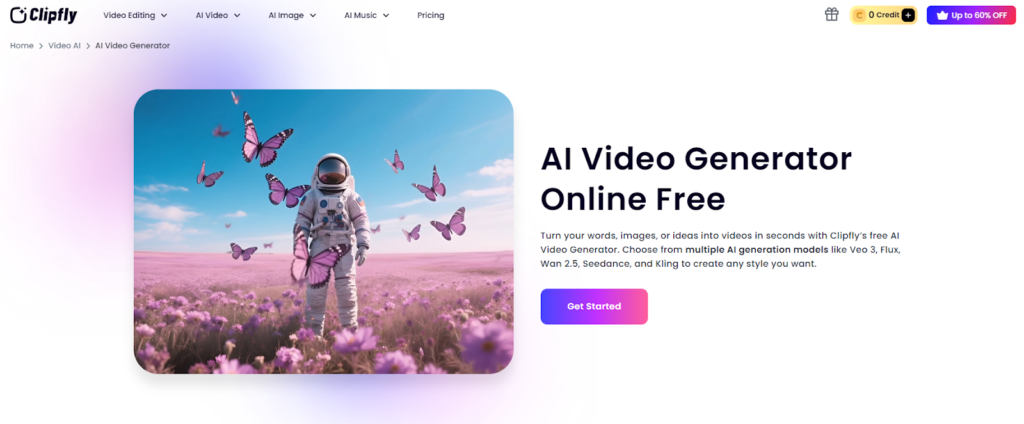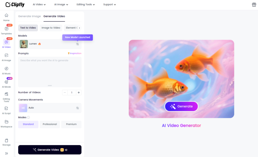 Then the platform chooses between several generation models. Clipfly incorporates a number of the latest AI engines, such as Veo 3, Flux, Wan 2.5, Seedance, and Kling. The models have their own strengths, as some of them are photorealistic, others are stylized. Such a capability of model switching enables users to align the strong points of the AI to their creative vision, which makes this feature the difference between professional-grade platforms and single-model ones.