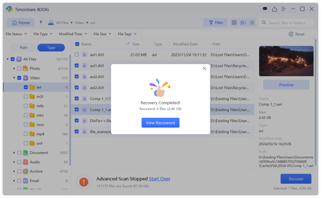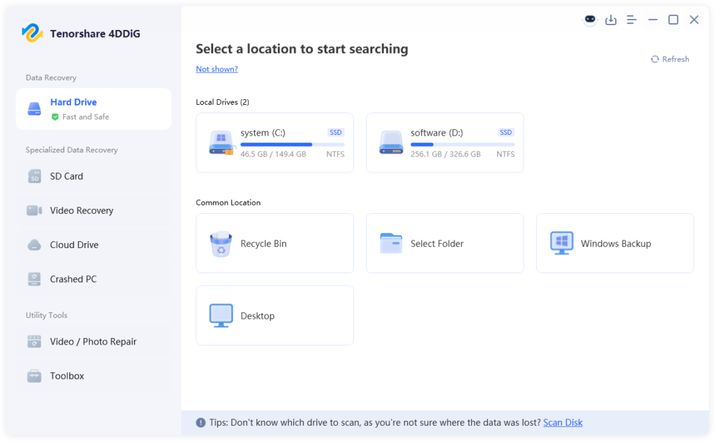 But if you don’t have a backup, employ 4DDiG Data Recovery. It offers file recovery from the Recycle Bin precisely. The tool is simple, supports many file types and storage media, and offers up to 2GB of file recovery for Windows users.