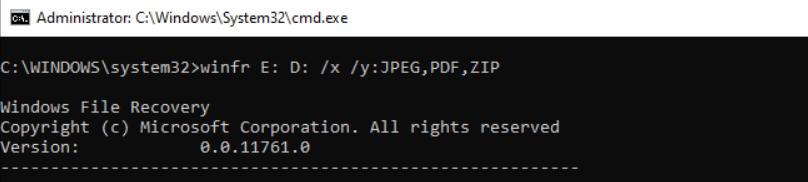 • winfr E: D: /x /y:JPEG,PDF,ZIP.