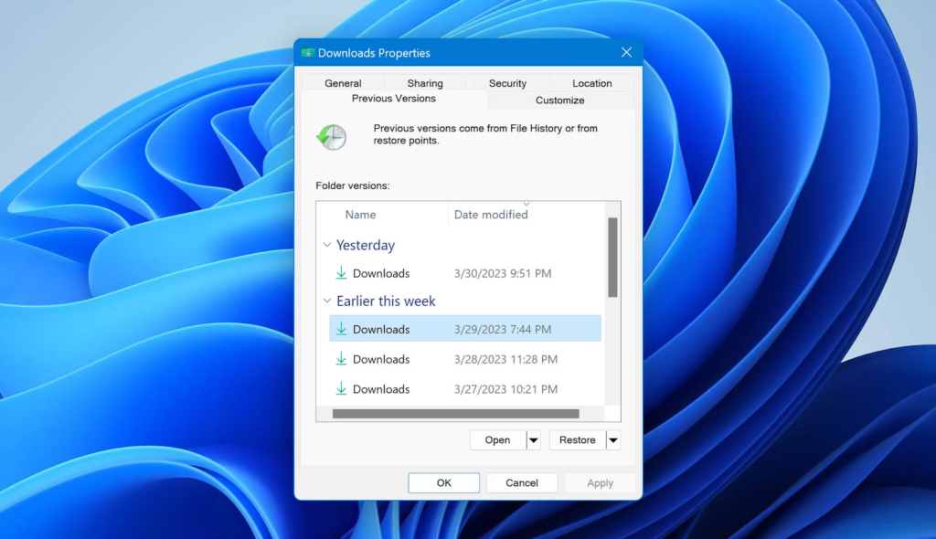 Step 2: Tap “Restore previous version.” Next, pick the version of the folder that contains the files that you erased from the Recycle Bin.