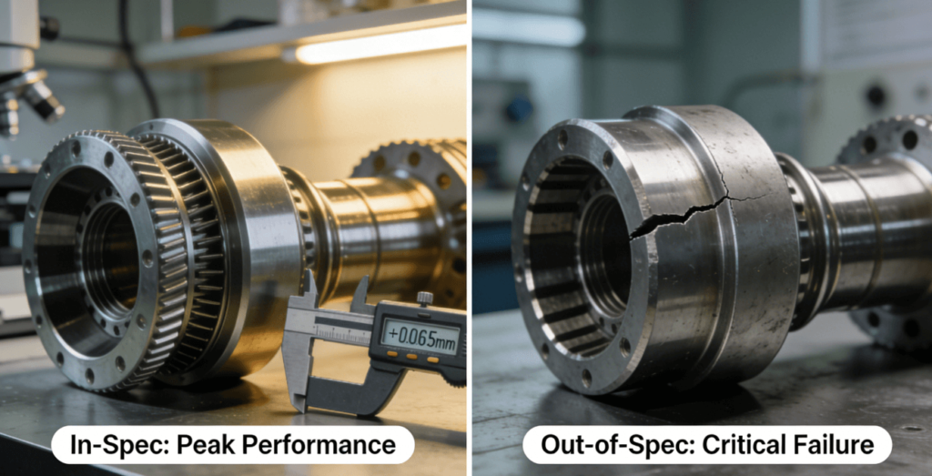 Figure 2: Visual explanation of how machining tolerance directly impacts performance and safety. Tight tolerances (left) prevent catastrophic failures (right).