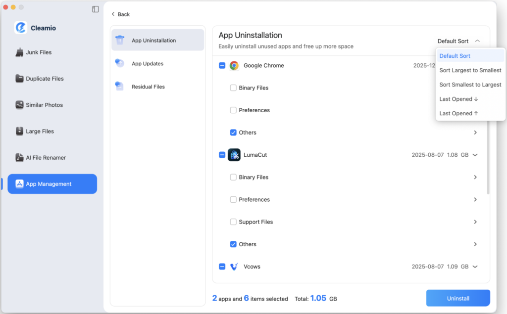 Manually uninstall apps on Mac takes a lot of time and attention, such as tracking hidden residual files in library folders. A dedicated uninstaller tool like Tenorshare Cleamio makes this process easy and efficient. Automatically detect the main app and related files, so you can safely delete everything with a few clicks. Cleamio provides a fast, thorough, and stress-free way to keep your Mac clean, without having to worry about file spills and system data errors.