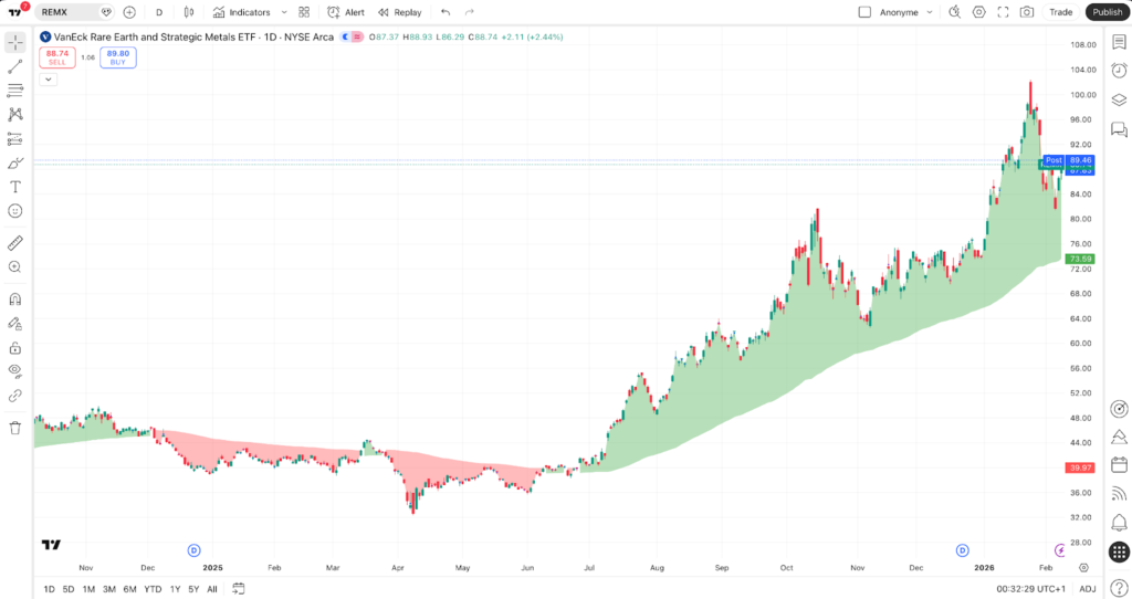 The dispute over rare earths has become far more serious amid escalating geopolitical tensions, as indicated by some charts, such as REMX, which has been rising sharply since mid-2025.