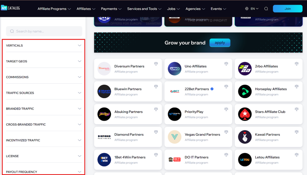 Every lost hour equals one lost opportunity to boost your campaign. And that’s a loss indeed. Here’s where affiliate marketing catalogs come in handy. High-performance media buying requires not only a creative eye but also access to the best deals and vetted networks. Navigating the market becomes significantly easier when you use the affiliate programs directory AFFCatalog, which consolidates thousands of networks, teams, brands and services into one efficient workspace.